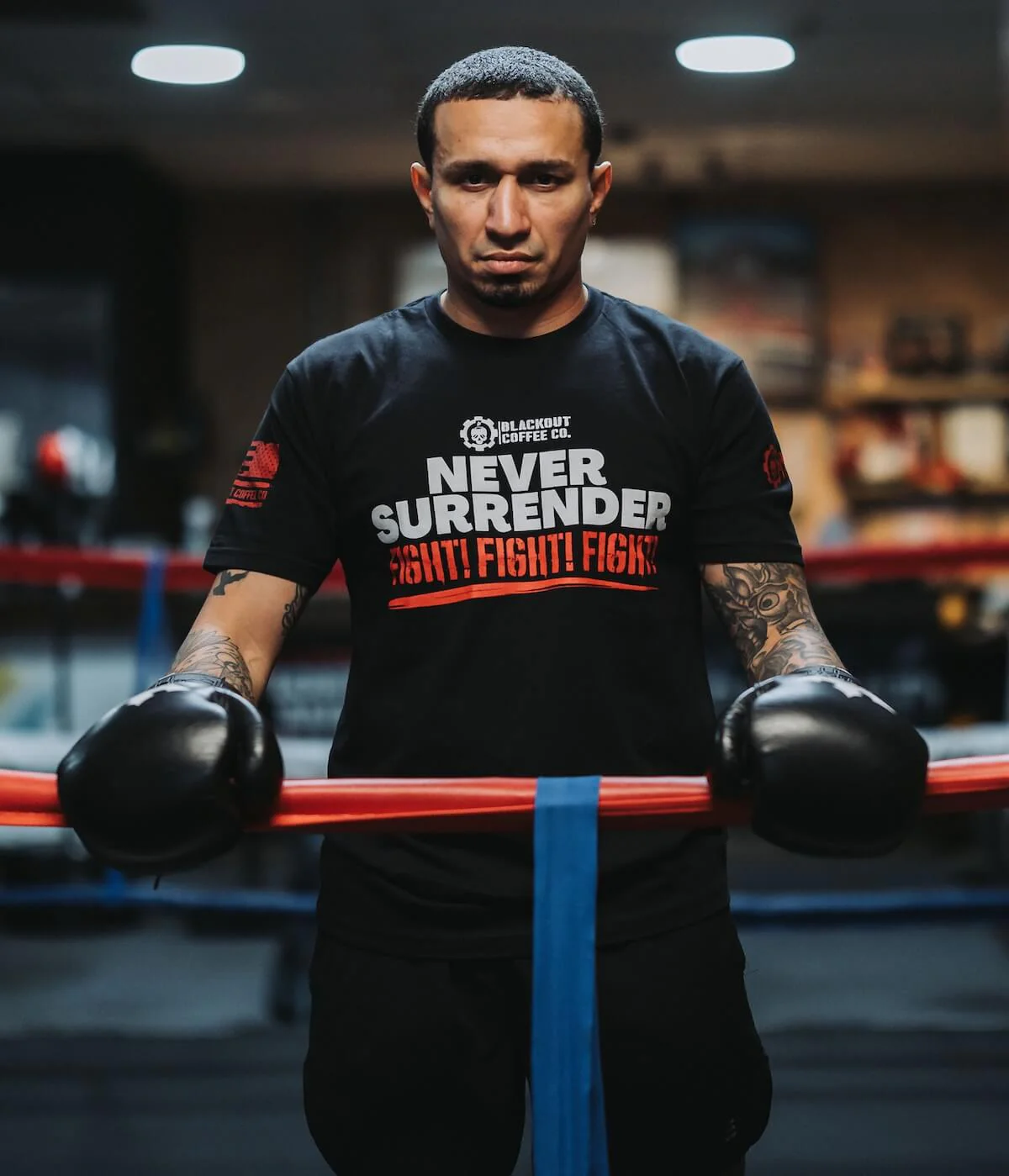 • Bold Front Design: The powerful message “Never Surrender. Fight Fight Fight.” is emblazoned across the chest, making a strong statement wherever you go.