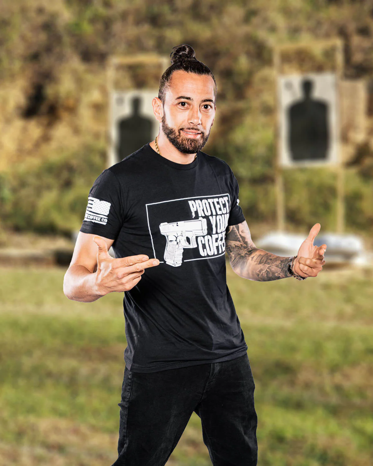 Stand your ground and protect what matters most with our “Protect Your Coffee” black t-shirt.